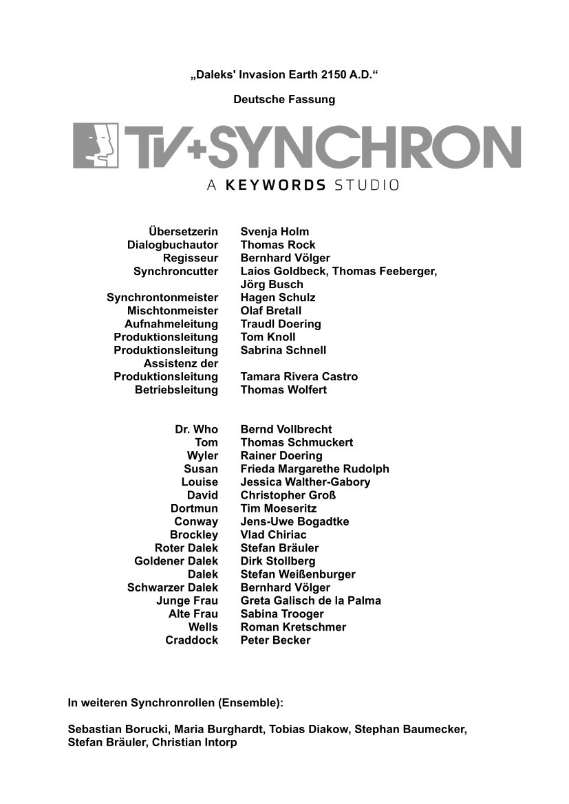 « News | Neue Infos zur deutschen Fassung der Dr. Who Filme | Alles zur deutschen Synchronisation