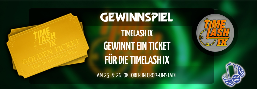 Am 25. und 26. Oktober 2025 öffnet die deutsche Doctor-Who-Convention „TimeLash“ bereits zum neunten Mal ihre Pforten. In der Stadthalle Groß-Umstadt finden Doctor-Who-Fans alles, was das Herz begehrt. Neben tollen Stargästen, Panels, Interviews, Autogrammstunden, Ausstellungen, Händlerständen und Wettbewerben bietet die Convention die Möglichkeit, sich mit vielen Gleichgesinnten zu treffen und ein ganzes Wochenende lang über „Doctor Who“ zu reden!