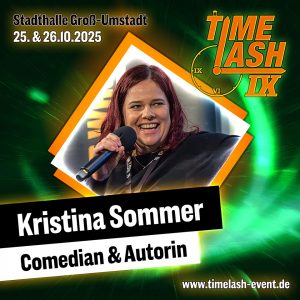 Auch in diesem Jahr ist die Komikerin und Autorin Kristina Sommer wieder auf der TimeLash dabei und wird das Publikum mit ihrem Comedy-Programm unterhalten.