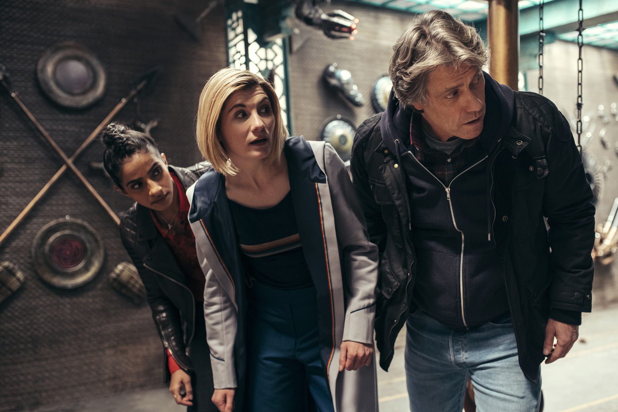 WARNING: Embargoed for publication until 00:00:01 on 09/10/2021 – Programme Name: Doctor Who S13 – TX: n/a – Episode: Doctor Who – Ep 1 (No. n/a) – Picture Shows: Yaz (MANDIP GILL), The Doctor (JODIE WHITTAKER), Dan (JOHN BISHOP) – (C) BBC Studios – Photographer: James Pardon